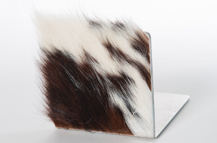 | Bücherstütze aus Inox, Aussenseite veredelt mit Fell oder Leder, auf Wunsch "gestanzt" | 140 x 140 | ca. 0.4 |