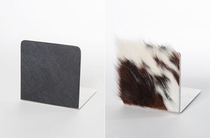 Buchstützen sind ein typisches funktionales Accessoire: Klein, oft unscheinbar und doch sehr nützlich, denn sie geben unseren Büchern die nötige Stabilität im Büchergestell. aare29 stellt die Bücherstützen aus rostfreiem Stahl her. Auf der Unterseite sind 4 Bupons aufgeklebt, die ein Wegrutschen der Buchstützen verhindern. Die Aussenseite wird mit verschiedenen Materialien wie Fell oder Leder veredelt. Auf Wunsch können in die Aussenseite auch Buchstaben oder andere Motive gestanzt werden.