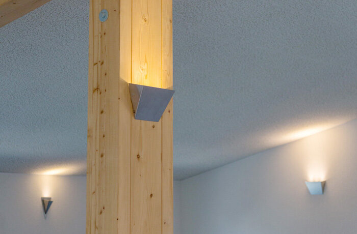 Die Wandlampen mit dem geradlinigen Gehäuse aus rostfreiem Blech eignen sich bestens für die blendfreie, indirekte Beleuchtung von Räumen. Als Leuchtmittel eignen sich