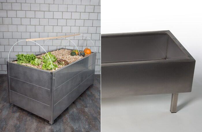 Home Produkte Sitzmöbel Lampen Gestelle Rollkorpusse Garderoben Pflanzgefässe Blumentrog Hochbeet Accessoires Preise Vertical Garden Werkstatt Kontakt news Pflanzgefässe Ob Hochbeet für die Terrasse und den Balkon oder ein Blumentrog fürs Wohnzimmer, das Büro oder den Wintergarten – für jedes Bedürfnis fertigen wir Ihnen das gewünschte Pflanzgefäss aus rostfreiem Stahl.